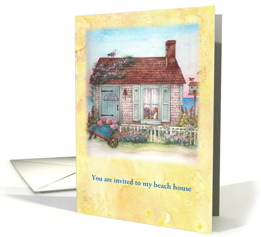 | Artist Notes: | The sun, sea & skies are the backdrop to this charming beach house custom invitation. Original beach house with cottage garden by judith cheng |