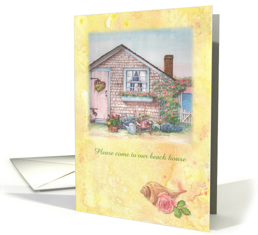 | Artist Notes: | Sunny picturesque seascape for your beach house invitation, or any special invitation. Customize this adorable beach cottage & garden by adding your own message. Whimsical & cheerful beach house by judith cheng |
