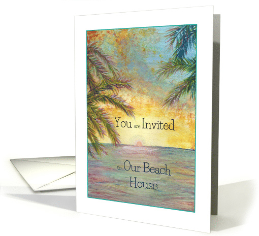 | Artist Notes: | Who doesn't want to get away from it all to rejuvenate. Invite your guests with this welcoming tropical sunrise or sunset hand painted in watercolors. The inside right of the invite has room for you to add more information and as usual the left side can be edited to suit your needs |