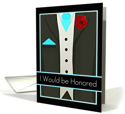 I would be honored, Best Man Invitation, Tux with Red Rose, elegant/unique