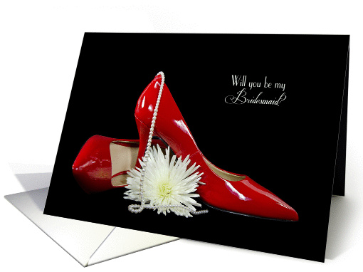 | Title: | Bridesmaid request invitation-red pumps with pearls and chrysanthemum |