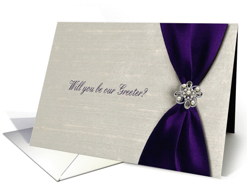 Title: | Greeter, Deep Purple Satin Ribbon with Jewel |
