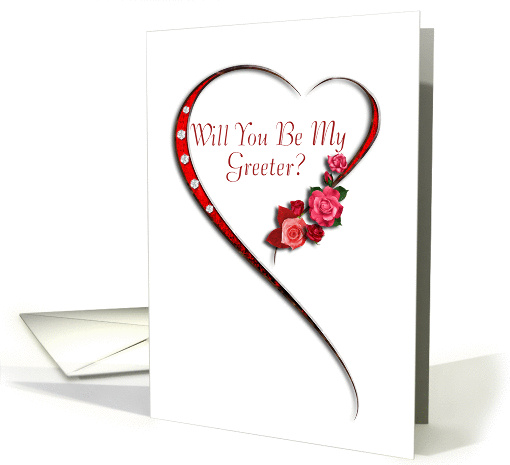 A wonderful invitation for your wedding attendants.They will treasure this card forever. A modern take on a traditional theme shows a swirling heart with red roses. Copyright Norma Cornes.
