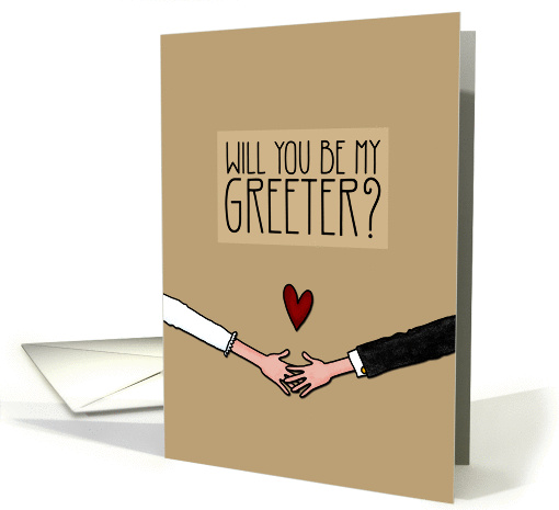 This sweet, contemporary greeter invitation with kraft paper look background features illustrated arms of a wedding couple coming in from the side of the card. Above the clasped hands is a heart.