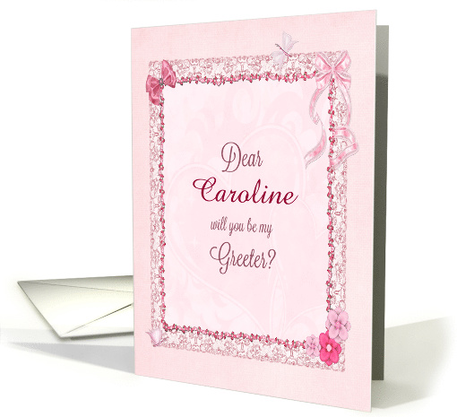 | Artist Notes: | Add a name to personalize this invitation. Invitation to your friend to be your greeter. A card that will delight the recipient.A gorgeous scrap-booking craft-look card. With lots of flowers and butterflies, this card is sure to delight. Create a coordinated look with matching cards and invitations. Note, this card is printed, not hand made. |