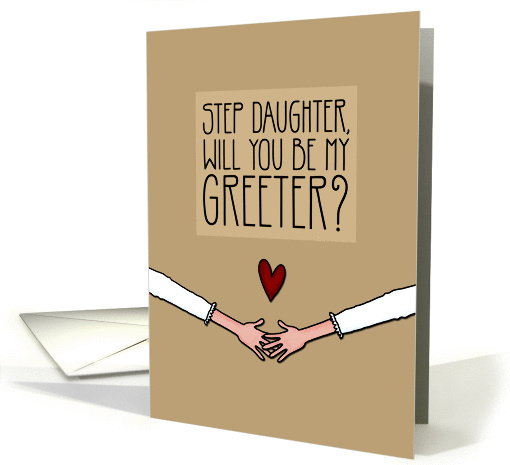 | Artist Notes: | Ask your step daughter to be your greeter with this contemporary wedding party invitation. Kraft paper look background features illustrated arms of a lesbian couple coming in from the side of the card. Above the clasped hands is a heart. |