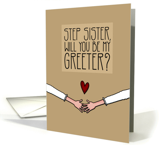 | Artist Notes: | Ask your step sister to be your greeter with this contemporary wedding party invitation. Kraft paper look background features illustrated arms of a lesbian couple coming in from the side of the card. Above the clasped hands is a heart. |