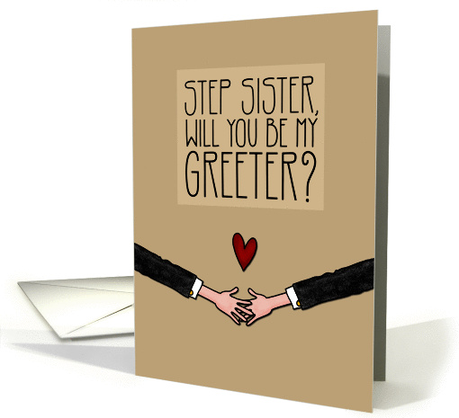 | Artist Notes: | Ask your step sister to be your greeter with this contemporary wedding party invitation. Kraft paper look background features illustrated arms of a gay couple coming in from the side of the card. Above the clasped hands is a heart. |