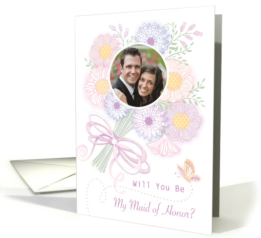 Wedding Floral Bouquet Butterfly Maid of Honor Invitation Custom Photo