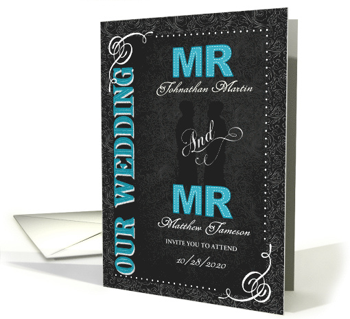 | Title: | Gay Wedding Invitation Mr and Mr Black Damask Chalkboard Custom |
