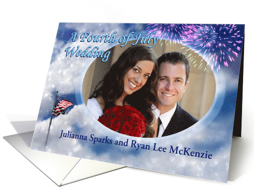 | Title: | Wedding Invitation, Fourth of July Photo with Flag and Fireworks |