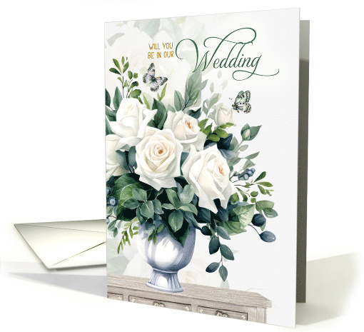 When you plan your wedding, give this lovely invite to someone you'd like to play a role on your wedding day, the gorgeous white rose bouquet is sure to make this an official request.
