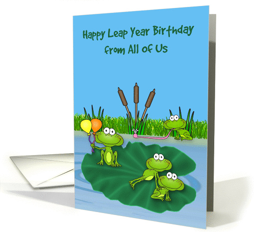 | Title: | Leap Year Birthday from All Of Us, frogs having fun on a lily pad |