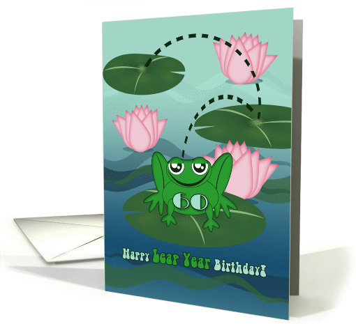 | Artist Notes: | Give the 'Leap Year' birthday man or woman a cute card this year! Happy 60th Leap Year Birthday, Frog Leaping on Pond Lily Pads |