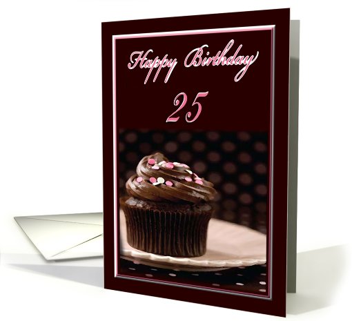 25th Birthday to like a Granddaughter to Me, Chocolate Cupcake with Pink Candies