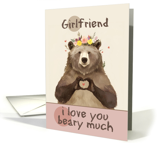 | Artist Notes: | A sweet bear wearing a flower crown makes a heart sign with his paws on a beige background with the text 'Girlfriend i love you beary much'. A sweet design to send to your wonderful girlfriend to let them how much you care about them. |