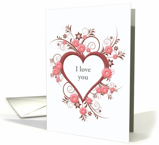 | Artist Notes: | An open heart in dark rose with light pink flowers and a scrollwork design. A romantic way to say "I love you". This card has a white background, but it is also available with a blue background. You can change the text. This card design is by Sandra Fann http://www.greetingcarduniverse.com/grandmasandy |