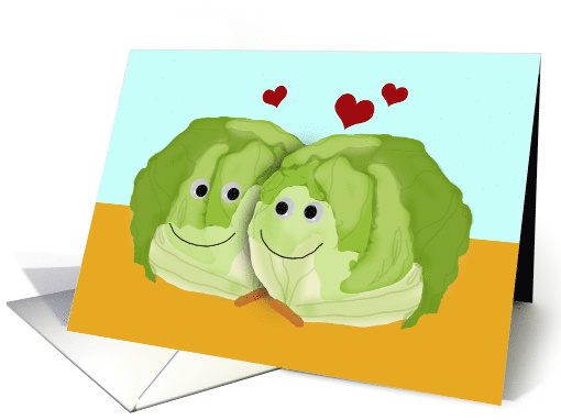 Adorable and funny Romantic card featuring lettuce. Say to your love, "Lettuce grow old and wilted together."