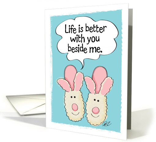 Love-Life is Better With You, Fuzzy Bunny Slippers Illustration