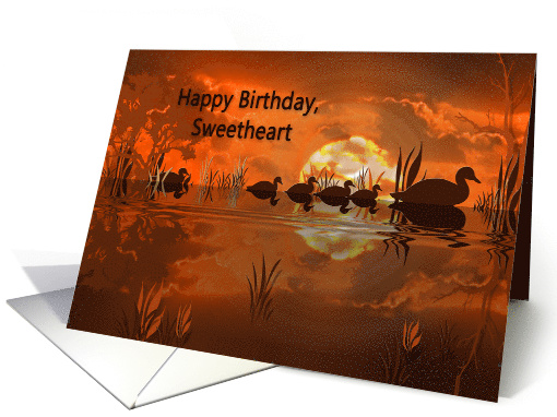 Title: | Birthday, Sweetheart, Ducks swimming in water at sunset |
