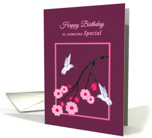 Love Romance Birthday White Hummingbirds on Cherry Blossom Branch