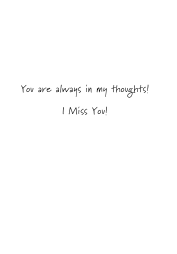 Miss You card with a cartoon bear thinking, on a pinkish background. The words above his head say: ThoUghts (the U is larger than the other letters) Inside says: You are always in my thoughts! I miss you!