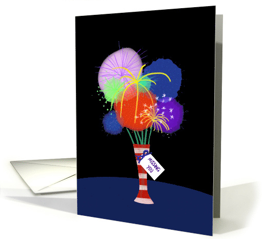 | Artist Notes: | Missing you on Fourth of July card. The vase is exploding with flowers that resemble fireworks on this colorful and unique Independence Day missing you card. |