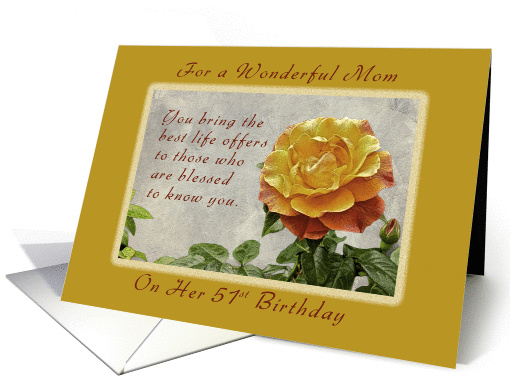 Birthday, 51st, For a Mom Who Gives The Best in Life, Yellow Roses