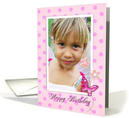| Title: | birthday photo card for mom with pink polka dots and butterfly |