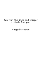 Inside: | Don't let the smile and chipper attitude fool you. Happy Birthday! |