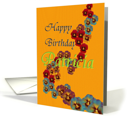 | Artist Notes: | A whole trail of pretty pansies in purple, blue and red on a bright orange background. A birthday for Patricia. |