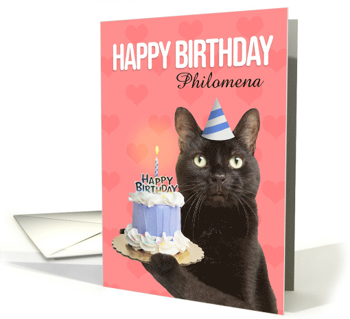 | Title: | Happy Birthday Custom Name Cute Cat in Party Hat With Cake Humor |
