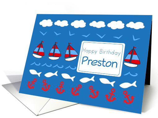 | Title: | Happy Birthday Preston Sailboats Fish Red White Blue |