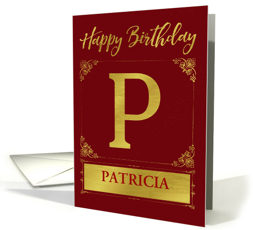 | Artist Notes: | Send a "Happy Birthday" greeting to your family or friend whose name starts with "P" using this elegant gold foil effect card. Monogram is set in gold with a faint diamond background. You can customize the name of the recipient on the card front. You can also change the inside text to make the message more personal. |