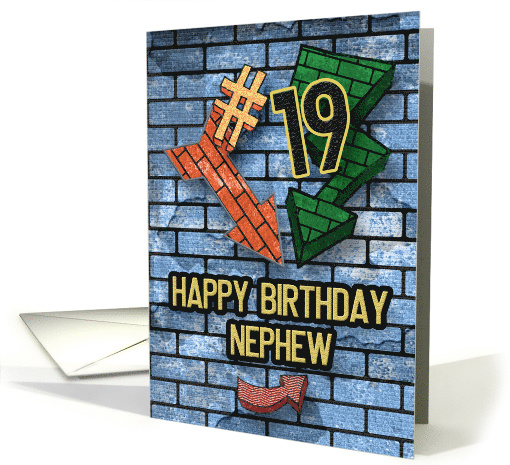| Title: | Happy 19th Birthday to Nephew Fun Bold Graphic Brick Wall and Arrows |