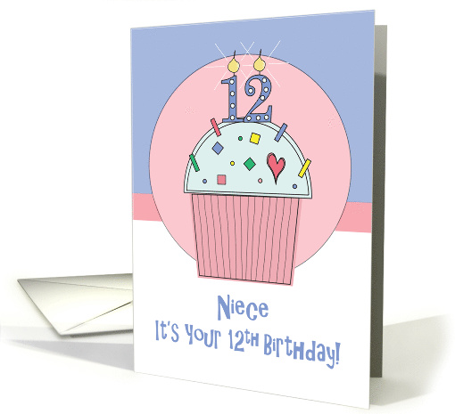 12th Birthday for Niece, Sprinkle Covered Cupcake with 12 Candle