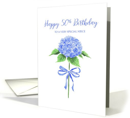 Happy 50th Birthday Niece with Watercolor Blue Hydrangea with Bow