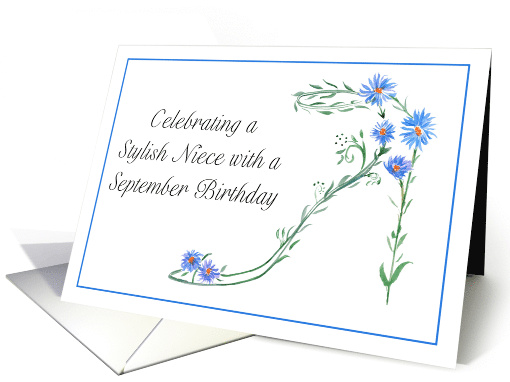 | Title: | Happy September Birthday Niece Blue Aster Flower High Heel |