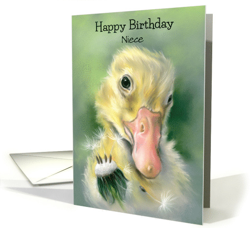 Send your young niece a sweet birthday greeting with this design featuring a soft and fluffy gosling, or baby goose, in pastel colors of light yellow and green as it is in the process of blowing away dandelion seeds as it makes a special wish.