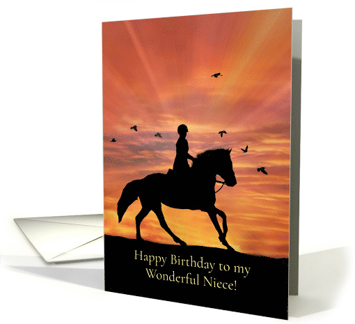 Birthday for Niece Horse and Rider with Birds and Sunrise