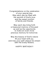 A tulip with golden petals and dark green leaves is the centerpiece of this birthday card for a niece. Rays of light coming from the upper right of the image bathe the flower in warmth. A border of dark blue on the left side of the card sets off the background of varied blues ranging from light to medium dark. A Bible verse, Ecclesiastes 3:11, in script print is to the right of the flower with the card’s caption underneath the verse.