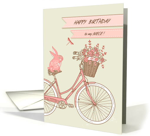 Birthday for Niece, Bicycle, Rabbit, Flower Basket