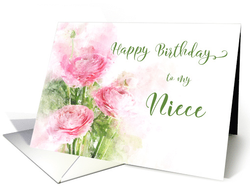 Happy Birthday Niece Pink Ranunculus Flowers Watercolor