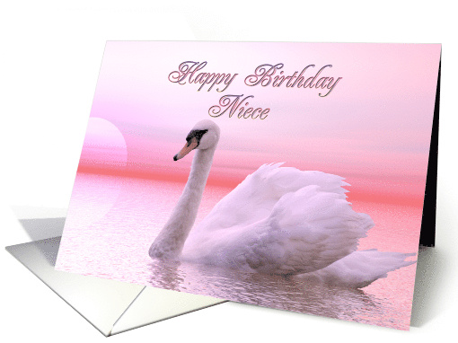 A birthday card for a niece. An elegant pink swan swimming on a lake. A beautiful birthday card for a girl or a woman.