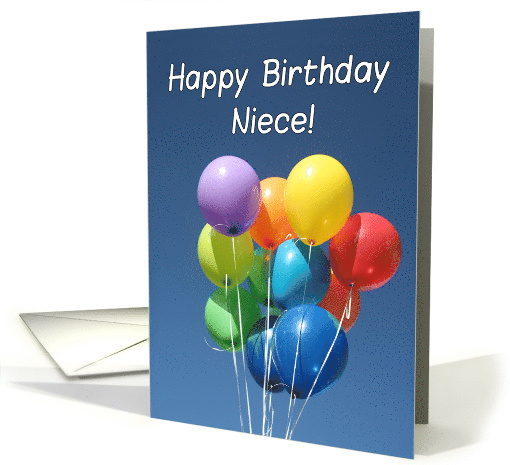 Birthday for Niece, Colored Balloons in Blue Sky. This colorful balloon card is available for all ages 1 to 12, in some non English languages, as a Birthday Party Invitation and for some specific family relations. A Studio Porto Sabbia design!