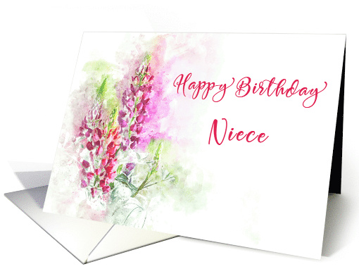 Happy Birthday for Niece Watercolor of Pink Lupins