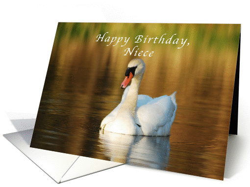 Happy Birthday, Niece, Swan in Pond at Sunset