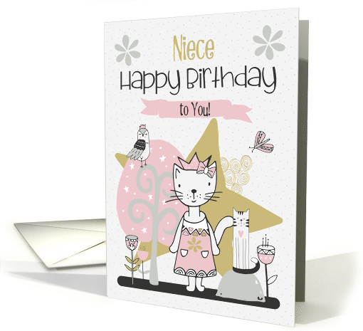 Happy Birthday to Niece Cute Kitty Whimsical Scene
