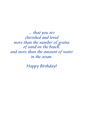 A lovable niece deserves an extra special greeting card for her birthday. This card makes her imagine that you as her aunt or uncle is holding her hand as you walk along the beach making her feel cherished and loved.