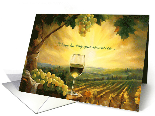 Niece Happy Birthday with Wine and Vineyard Pretty Custom Text